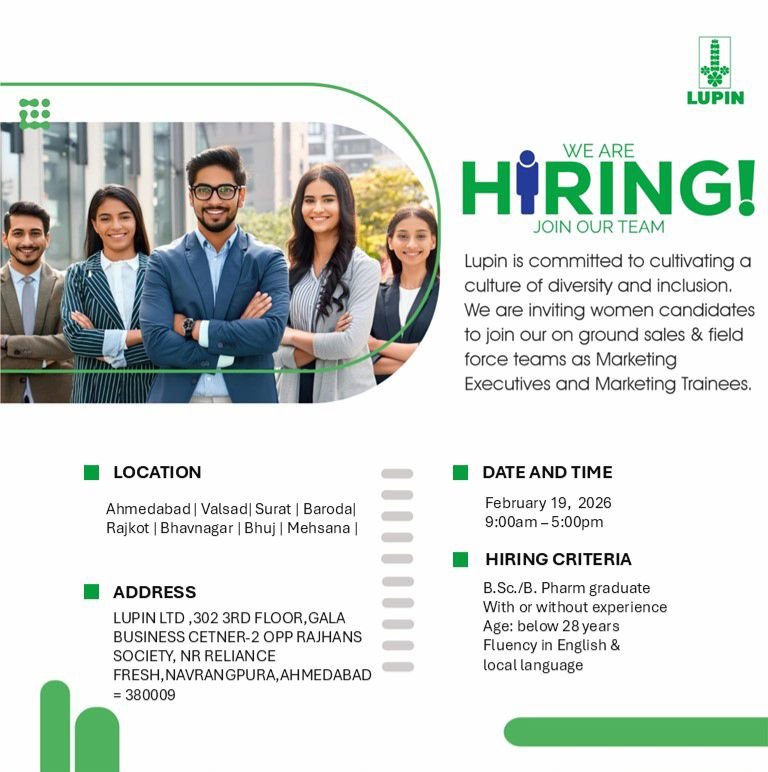 Medical Representative Jobs Vacancy in Lupin Ltd – Walkin – Ahmedabad